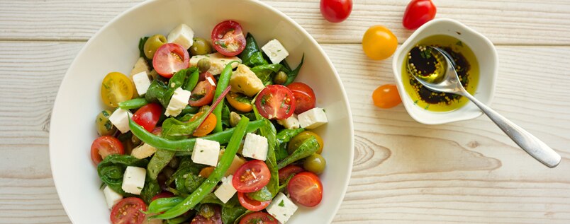 Nella nostra insalata estiva possiamo aggiungere, (senza gabbare nessuno!) tutti gli ingredienti che vogliamo, dal peperone ai fagiolini, ma non dobbiamo dimeticare la Feta DOP Fior fiore, prodotta in Grecia secondo il metodo tradizionale con latte di pecora e con l’aggiunta di latte caprino nella giusta quantità per conferire il gusto tipico leggermente acidulo.