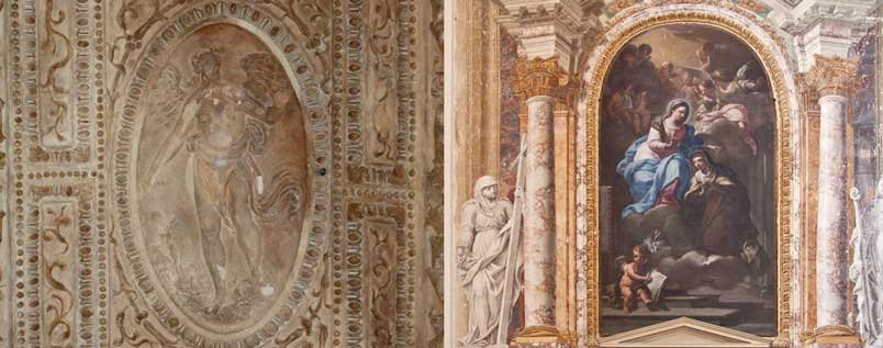 Il tessuto del letto di Beatrice d’Este e una coppia di angeli in terracotta