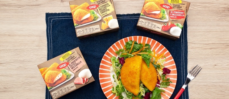 Anche qui, c’è stata una revisione della ricetta: la nuova ricetta delle crêpes ripiene prevede una farcitura più ricca e gustosa con ingredienti di qualità. Il prodotto non è prefritto, in linea con l’impegno di Coop di ridurre la quantità dei grassi saturi nei prodotti a marchio. I gusti che puoi trovare sugli scaffali della tua Coop sono tre: prosciutto cotto e mozzarella, ai formaggi (mozzarella, edamer ed emmental) e infine un grande classico, pomodoro e mozzarella.