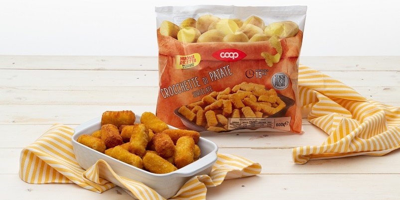 La nuova ricetta delle crocchette di patate Coop prevede una panatura più ricca: un mix di farina di grano tenero e spezie che rende il prodotto più croccante e saporito. Le crocchette racchiudono all’interno una morbida e delicata purea di patate e sono perfette per gustosi snack fuori pasto oppure per accompagnare i secondi piatti in tavola. Realizzate senza olio di palma, possono essere cotte al forno in 15 minuti oppure fritte in padella o in friggitrice (4/5 minuti).