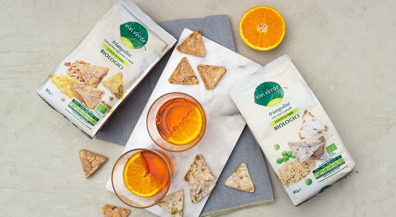Ideali per dare un tocco croccante e saporito a feste e aperitivi o come snack durante la giornata, i triangolini biologici Vivi verde sono proposti in due versioni: con grano saraceno e mais e con riso e piselli. Entrambi i prodotti sono senza glutine e vantano il claim “fonte di fibre”.