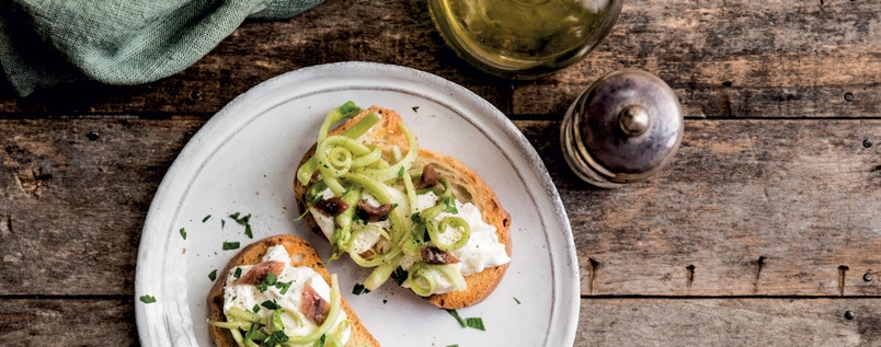 ANTIPASTO: Crostini con puntarelle, alici e stracciatella di bufala