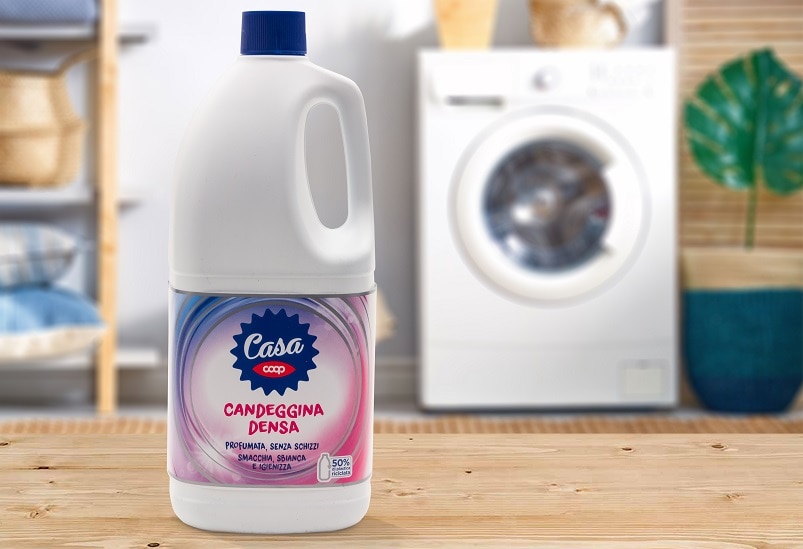 Alle candeggine della linea Casa Coop si aggiunge la candeggina densa e profumata, in formato da 2,5 litri, che va a completare l’offerta di candeggine Casa ora composta da: