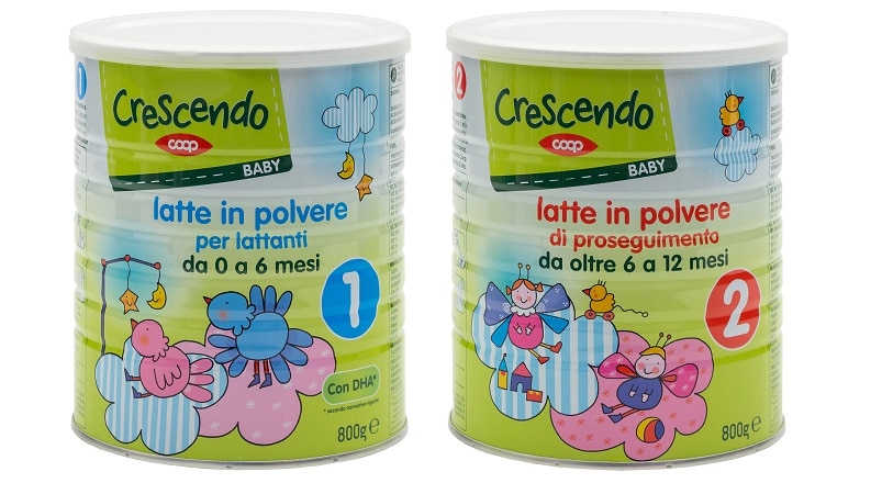 Novità nella linea dei latti per l’infanzia Crescendo Baby. A febbraio 2020 è entrata in vigore una nuova normativa europea che ha imposto la modifica delle formulazioni dei latti destinati all’infanzia, richiedendo la presenza nelle formulazioni dei latti infanzia del DHA (un particolare acido grasso Omega-3); questo ha obbligato la riformulazione anche del latte in polvere per lattanti 1 e del latte di proseguimento 2. Con la riformulazione di queste due referenze verrà dismessa anche l’attuale linea di confezionamento (scatola cartone + sacchetto in plastica), passando ad un confezionamento in barattolo di latta richiudibile, più sicuro e adatto per conservare al meglio le nuove formulazioni. Entrambi i barattoli contengono 800 g di prodotto.