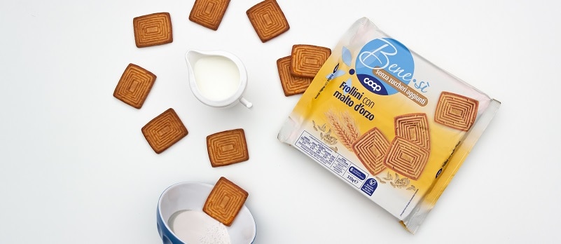 I frollini con malto d’orzo senza zuccheri aggiunti Bene.sì nascono come emblema della semplicità e della qualità. Ideali per chi vuole ridurre il consumo di zucchero senza rinunciare al gusto. Sono realizzati con ingredienti di qualità e senza olio di palma, sia per forma che per ricetta sono ottimi per essere inzuppati nelle bevande calde e gustati in qualsiasi momento della giornata. Le 6 confezioni salva-freschezza, per un totale di 330 g, permettono di avere sempre la giusta porzione a portata di mano.