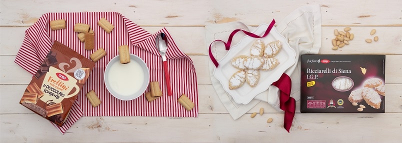 Nuova ricetta per i Ricciarelli di Siena IGP Fior fiore che tornano nuovamente disponibili a scaffale. La nuova confezione con finestra trasparente permette di mostrare e valorizzare il prodotto. I Ricciarelli di Siena IGP Fior fiore sono preparati secondo l’antica ricetta della tradizione senese introdotta, secondo la leggenda, dal cavaliere Ricciardetto della Gherardesca al ritorno dalle crociate. I morbidi pasticcini ottenuti hanno la tipica forma a losanga e un caratteristico sapore di mandorla.
