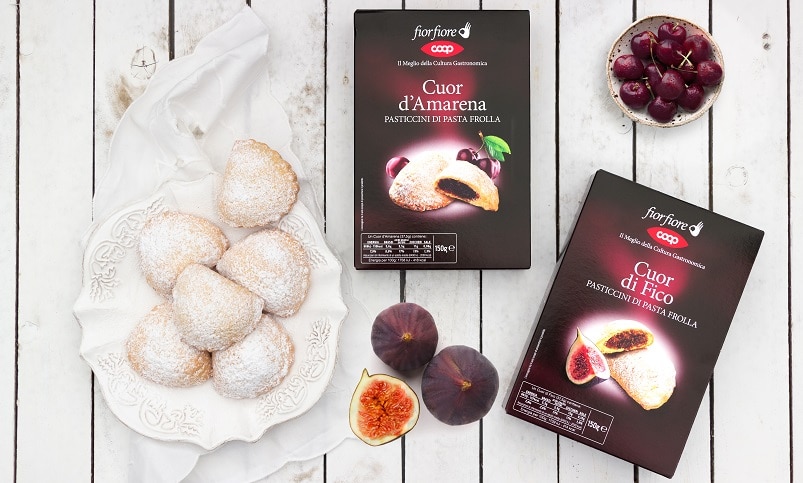 Un delicato e morbido cuore gelosamente racchiuso da una fragrante pasta frolla: ecco Cuor di fico e Cuor d’amarena Fior fiore! Una dolcezza squisita e golosa da consumarsi a fine pasto, in una sfiziosa pausa durante la giornata o per accompagnare una fumante tazza di tè. Queste nuove proposte non contengono olio di palma e sono preparate con uova da galline allevate a terra, come tutti i pasticcini di pasta frolla della piccola pasticceria classica fior fiore. La gamma comprende altre quattro referenze: