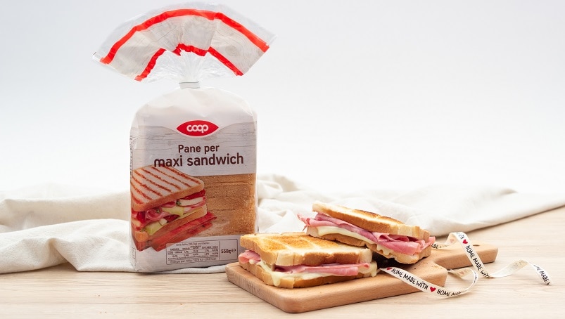 Coop propone il pane per maxi sandwich all’americana dalle fette grandi soffici e gustose. Si può utilizzare sia al naturale che caldo, tostato o alla piastra, per creare sfiziosi e ricchi panini per un pranzo fuori casa o per un veloce spuntino da condividere con parenti e amici. La sua particolare dimensione permette, volendo, di ricavare due triangoli dalla fetta e di realizzare i famosi “Club Sandwich”, da servire con patatine fritte e insalata per una serata come al pub!