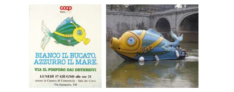 Indimenticabili sono anche le campagne Coop dalle quali siamo partiti per arrivare a creare delle vere e proprie proposte educative. Un esempio? La campagna decennale iniziata nel 1984 “Bianco il bucato. Azzurro il mare” contro l’abuso di fosforo nei detersivi, che ha lanciato una proposta di legge condivisa con le associazioni ambientaliste e culminata con l’immissione sul mercato di detersivi a marchio Coop senza fosforo. E chi non ricorda il pesce azzurro e verde, con la grande maschera gialla, simbolo della campagna, che sfilava sul Canal Grande al Carnevale della Fantasia, a Roma sul Tevere e a Firenze sull’Arno?