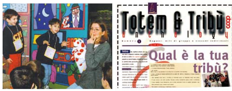 Dopo solo 2 anni, nel 1997, siamo arrivati nelle scuole superiori italiane con un progetto che parlava agli adolescenti del tema pervasivo dei consumi, senza pregiudizi e moralismi. “Totem&tribù” non ha solo fatto vivere esperienze, ma ha anche proposto contesti in cui dare la voce proprio ai ragazzi, che si propongono come consumatori pensanti, responsabili della propria costruzione d’identità. In un contesto incentrato sul dialogo, l’ascolto e la rielaborazione critica, abbiamo decodificato le dinamiche comunicative del mercato e dei consumi utilizzati dai media, unendole alle forme comunicative dei giovani, e creando insieme una vera e propria tribù che parla!