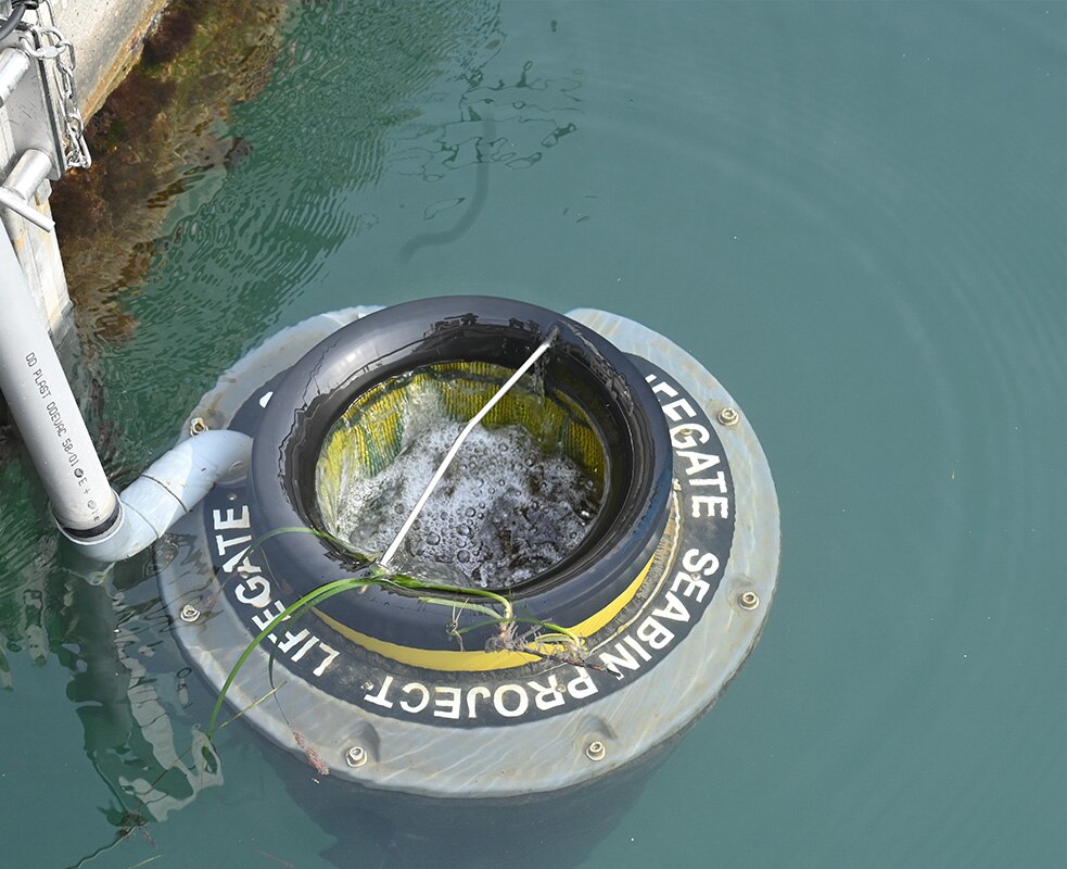 Il seabin è un cestino che, galleggiando a pelo d'acqua, cattura i rifiuti, dai più grandi fino alle microplastiche, mentre una piccola pompa espelle l'acqua filtrata. È in grado di lavorare 24 ore su 24, sette giorni su sette, pompa fino a 25.000 litri d'acqua all'ora e necessita di interventi di svuotamento e pulizia.