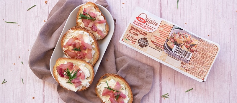 Il guanciale in sticks Origine Coop proviene da suini italiani allevati senza l’utilizzo di antibiotici negli ultimi 4 mesi e con una specifica alimentazione priva di O.G.M. Come da disciplinare Origine Coop, è prevista un’accurata selezione degli allevamenti e dei centri di lavorazione e vengono applicati rigorosi controlli della filiera anche in aggiunta a quelli di legge. La confezione da 120 g è composta da due vaschette da 60 g ciascuna.