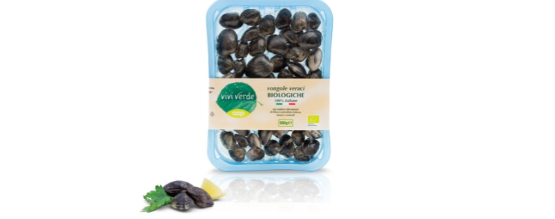 Coop propone oggi le Vongole veraci Vivi verde 100% italiane in vaschetta da 500 g. Questi molluschi provengono da allevamenti biologici certificati, vengono depurati e confezionati in uno stabilimento autorizzato sotto il controllo degli enti di certificazione e degli enti sanitari preposti. La filiera garantisce, attraverso meticolosi controlli, un prodotto dalle elevate caratteristiche qualitative.