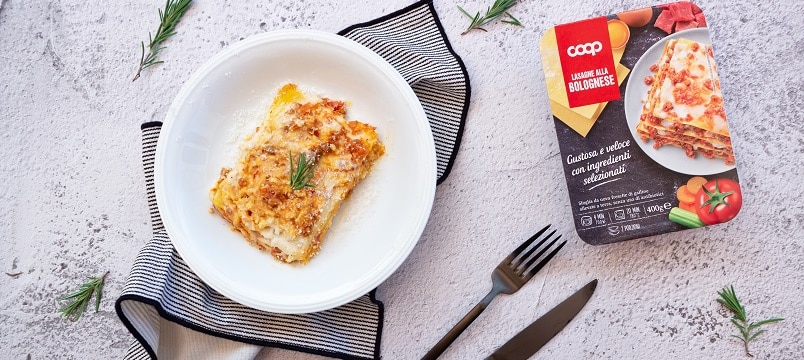 Novità nel reparto della gastronomia fresca a libero servizio: le Lasagne alla bolognese Coop. Comode e veloci da portare in tavola, sono prodotte con ingredienti selezionati e con sfoglia da uova fresche di galline allevate a terra senza uso di antibiotici. Nel rispetto della ricetta tradizionale emiliana, sono condite con ragù di carne e besciamella. Si consiglia di consumarle ben calde per gustarle al meglio. La vaschetta va direttamente in forno: 4 minuti nel microonde oppure 20 minuti nel forno tradizionale (a 180°). La confezione è da 400 g corrispondente a 2 porzioni.
