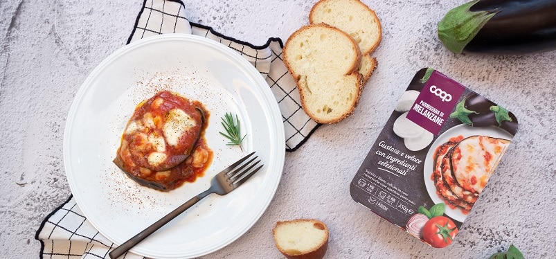 Altra novità tra i piatti pronti della gastronomia a libero servizio è la Parmigiana di melanzane Coop. Ricetta tipica della tradizione culinaria italiana, porta in tavola tutto il gusto della cucina mediterranea. Saporita e filante, è indicata sia come contorno che come appetitoso piatto unico. La Parmigiana di melanzane Coop è realizzata con ingredienti selezionati ed è pronta in pochi minuti: lasciandola nella sua stessa vaschetta e utilizzando il microonde (4 minuti) oppure il forno tradizionale (20 minuti a 180°). La confezione è da 350 g e corrisponde a 2 porzioni.