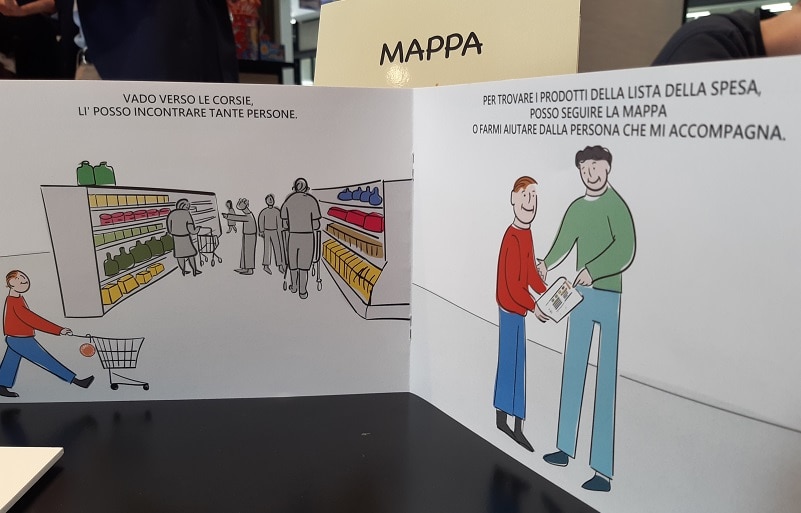 La terza e ultima tappa è stata la creazione di un kit che può essere direttamente richiesto al punto vendita di via Gramsci. Un libricino contenente la “Storia Sociale” che spiega, prevalentemente tramite immagini, come ci si deve muovere all’interno del supermercato. E, infine, l’album “stacca e attacca” in cui sono presenti le figurine illustrative degli articoli del supermercato che aiuteranno le persone autistiche a fare la spesa.
