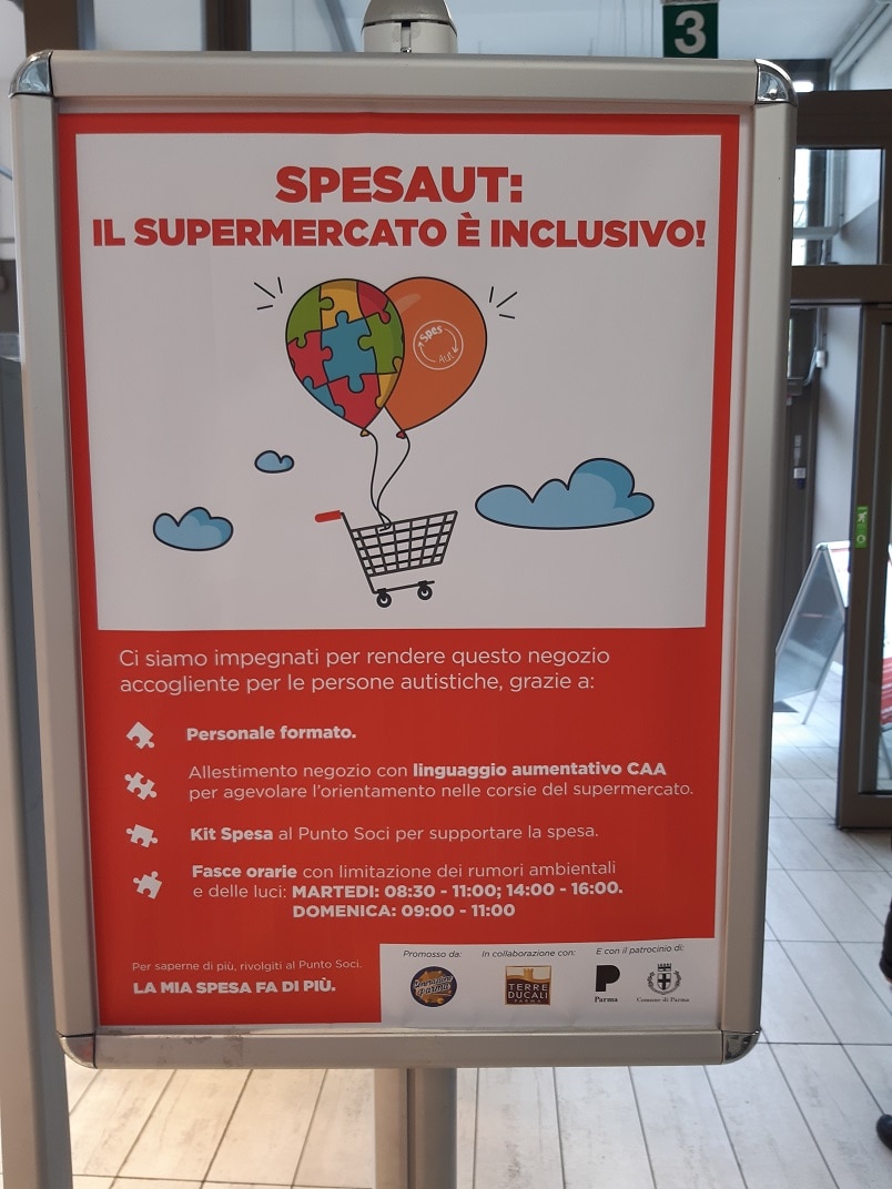 La Coop di via Gramsci, a Parma, è il primo negozio di Coop Alleanza 3.0 “AUTentico”, ossia autism friendly, volto a facilitare la spesa alle persone con disturbo dello spettro autistico. Si tratta di un’iniziativa resa possibile grazie al progetto “SpesAut” promosso da Generazione Parma in collaborazione con Cooperativa Insieme e il patrocinio del Comune di Parma.