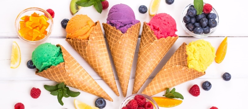 Nella scelta del gelato le creme sono da preferire: sono a base di latte, perciò mantengono una buona consistenza al cucchiaio anche a temperature non troppo basse, a differenza dei sorbetti alla frutta, che vanno mangiati freddissimi. Eppure c'è chi non teme di accompagnare un Moscato d'Asti, dalle note fruttate e floreali, a un fresco sorbetto al limone, meglio se fatto con il succo di veri limoni di Sicilia. In generale il consiglio, se proprio si desidera bere qualcosa con i gelati alla frutta, è di scegliere vini che ne richiamino i profumi.