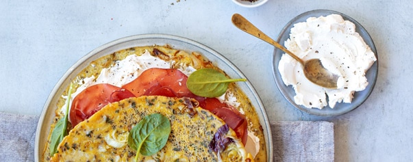Rompete le uova! Omelette farcita con caprino, bresaola e spinacini