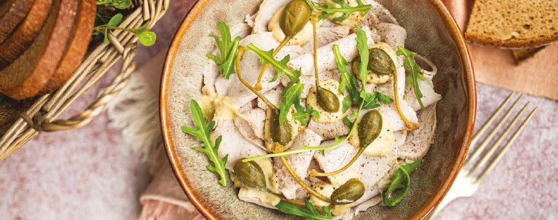 Sottili fette di carne accompagnate a una salsa stuzzicante. Un piatto piemontese tradotto in francese