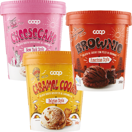 Hai ricevuto un goloso sms perché è il momento di provare i nuovi gusti di gelato Coop: tre squisite proposte ispirate a dolci tradizionali europei e statunitensi, in barottolini da 300 g. Caramel Cookie è il gusto con biscotto al caramello «speculoos», tipico della tradizione belga, mentre nel gusto Brownie trovi spezzettato il classico dolce americano amato in tutto il mondo. Infine, il gusto Cheesecake ti porta a New York affondando il cucchiaino tra crema, biscotti e lamponi.