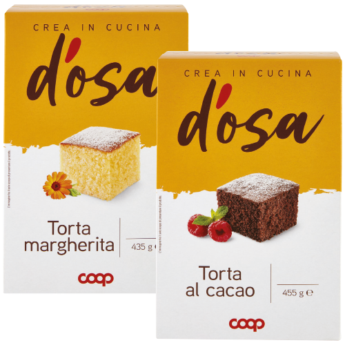 Prepara torte soffici e deliziose con le tue mani, in pochi minuti: aggiungi alla confezione ingredienti freschi come uova, latte e burro, farcisci e decora a piacere, al resto ci pensa D'Osa!