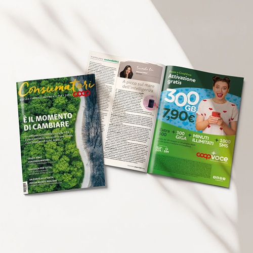 Nata nel 1983, la rivista mensile Consumatori è distribuita gratuitamente ai soci Coop nei quasi 350 punti vendita di Coop Alleanza 3.0 e stampata in 7 milioni di copie all'anno. Un mensile che vuol essere punto di incontro aperto alle idee e agli interessi dei lettori e, insieme, dar voce alla grande rete di persone, valori ed esperienze che ogni giorno fanno la Coop. Consumatori è quindi uno spazio dedicato al racconto a tutto tondo delle nostre attività sociali e commerciali, e dove approfondiamo temi di attualità con editoriali e rubriche dedicate, a cura sia della redazione della rivista che di grandi firme giornalistiche e di esperti del mondo digitale, agroalimentare, di stili di vita, culturale, e così via. La rivista è anche disponibile online sul sito dedicato. Una platea di lettori che si informa su Coop, alla cui attenzione puoi inserirti con l'acquisto di pagine pubblicitarie per arricchire la narrazione della nostra realtà e dei nostri partner e raccontare il tuo brand e la tua offerta.