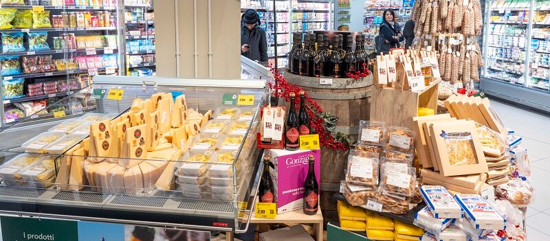A completare l’offerta dei prodotti freschi anche le eccellenze dei prodotti locali mantovani come ad esempio il salame mantovano, i tortelli di zucca e la torta sbrisolona. Presente anche una fornita cantinetta, con vini e birre in una ricca proposta di etichette locali. Il supermercato offre inoltre tutta la qualità, l’eticità e la sicurezza dei prodotti Coop, tra cui anche quelli della linea dei biologici Vivi verde, il meglio dell’eccellenza gastronomica Fior fiore e gli articoli salutistici Bene.sì. La proposta per la spesa quotidiana viene completata grazie all’assortimento di prodotti alimentari, freschi e surgelati.