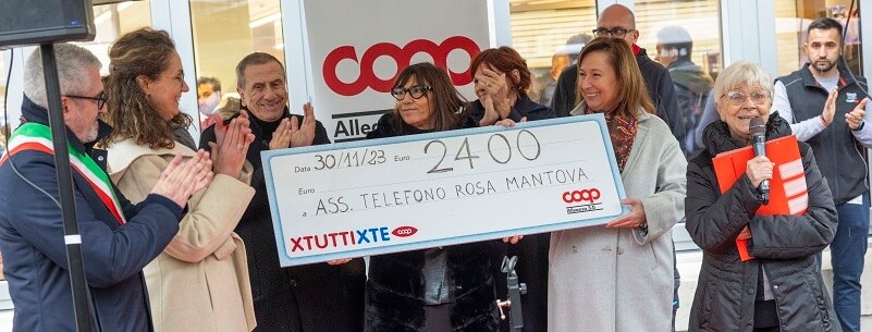 Nel corso dell’appuntamento inaugurale, prima del taglio del nastro, è salita sul palco anche la Presidente Associazione Volontarie del Telefono Rosa di Mantova, Paola Mari: la realtà che su Mantova è impegnata sul contrato alla violenza di genere riceverà un assegno simbolico del sostegno della Cooperativa nell’ambito della campagna “Noi ci spendiamo, e tu?” che Coop Alleanza 3.0 promuove.
