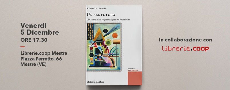 Nel suo libro Un bel futuro (Edizioni La Meridiana), Manuela Campalto porta la sua testimonianza e l’esperienza maturata in oltre vent’anni di impegno nel volontariato giovanile all’interno del progetto educativo Con-tatto promosso dal Comune di Venezia per avvicinare le giovani generazioni al mondo del volontariato. Storie di ragazzi e ragazze che, scoprendo l’altro, hanno scoperto anche sé stessi: perché fare volontariato non significa “fare per”, ma “stare con”, costruendo legami, empatia e comunità. E la consapevolezza che educare, per un adulto, significa soprattutto dare spazio.