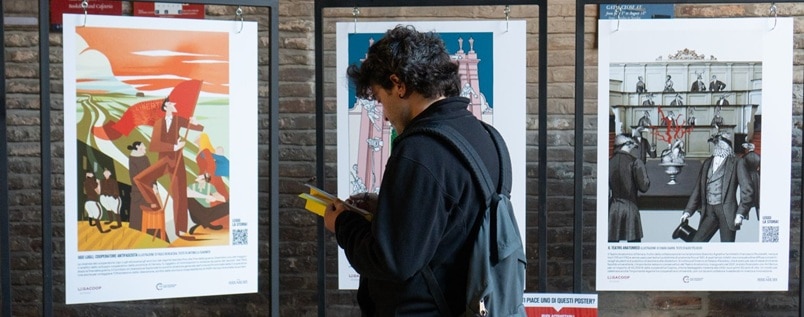 Il progetto nasce da un’intuizione semplice e potente: raccontare la cooperazione attraverso le persone, non solo attraverso i numeri. Così sono nate dodici storie illustrate, pubblicate sul sito di Legacoop Estense e ora raccolte in una mostra che prende vita proprio dentro alla Coop Sigonio: storie vere, radicate tra Modena e Ferrara, ma capaci di parlare a chiunque.