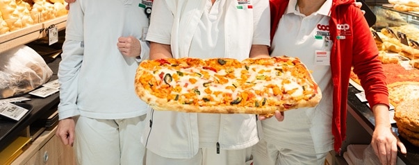 la pizza alla pala, prodotta internamente, con la possibilità di ordinarla e ritirarla calda al termine della spesa