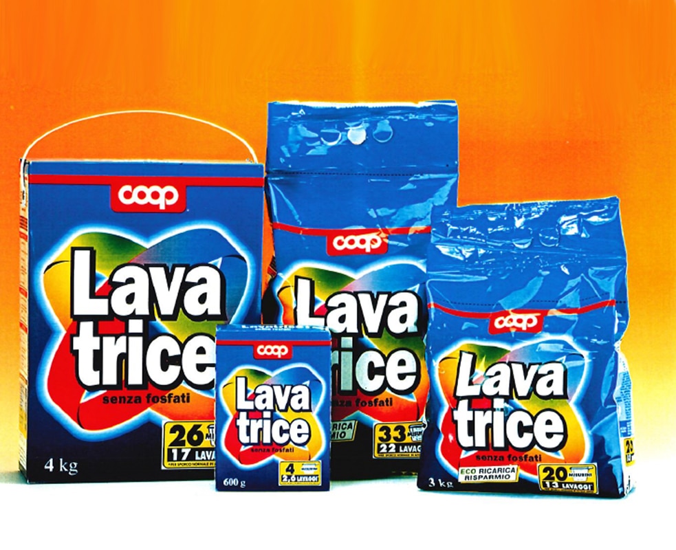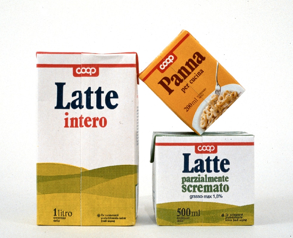 I prodotti a marchio vennero poi suddivisi in categorie merceologiche e si decise di ridurre gli imballaggi, definendo forme semplici di base e un sistema di colori identificativo per ogni categoria. Sui prodotti si passò dal quadrifoglio a fasce di colore al logo Coop con un filo rosso, che collegava idealmente tutti i prodotti.