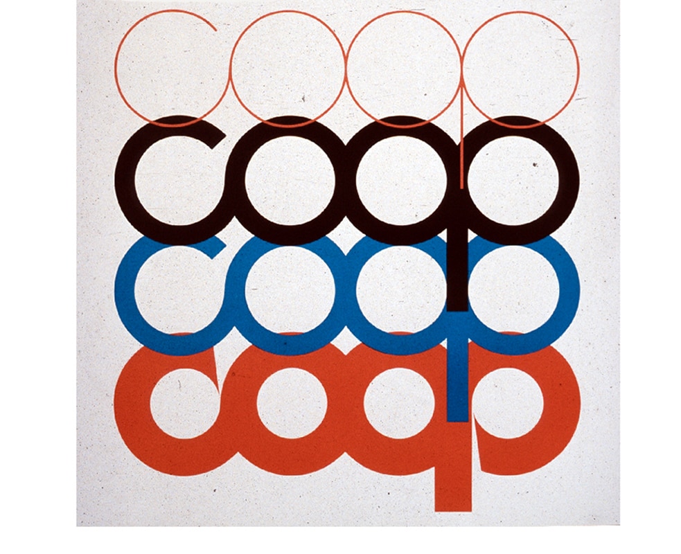 In questo contesto Bob Noorda venne chiamato a realizzare uno studio di redesign dell’immagine coordinata fatta da Steiner precedentemente e, cambiando il logo, cambiò ancora una volta anche il prodotto Coop. La scritta Coop venne ridimensionata, aumentato il corpo, i caratteri resi più attuali pur mantenendo la struttura a quattro cerchi. Anche il colore, che negli anni aveva subito variazioni passando dal giallo al blu, ora tornava alla versione originale: il rosso Coop.