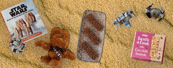 Ci sono giorni in cui ci sembra di dover salvare la galassia del Primo Ordine e può persino capitare di saltare il pranzo. Per ritrovare le energie perdute basta preparare la ricetta di pagina 71 del ricettario o andare alla Coop e comprare le nostre barrette in grado di farvi sentire forti come Chewbacca
