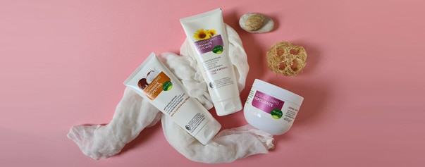 Una volta effettuata la detersione di tutti i giorni con un detergente come il Gel doccia delicato Vivi verde, ecco i tre prodotti corpo che compongono il nostro percorso benessere domiciliare: