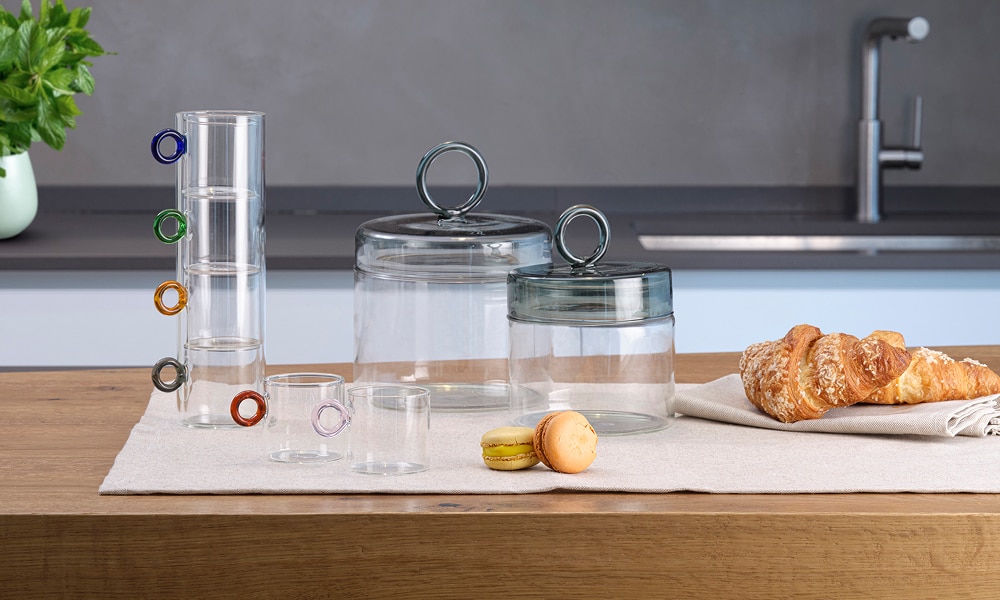 La linea Olimpia unisce design contemporaneo e funzionalità quotidiana. Realizzati in vetro borosilicato, leggero ma resistente, questi oggetti donano trasparenza e luminosità alla tua cucina, portando sulla tavola la leggerezza del vetro e un tocco di design italiano che non passa inosservato.