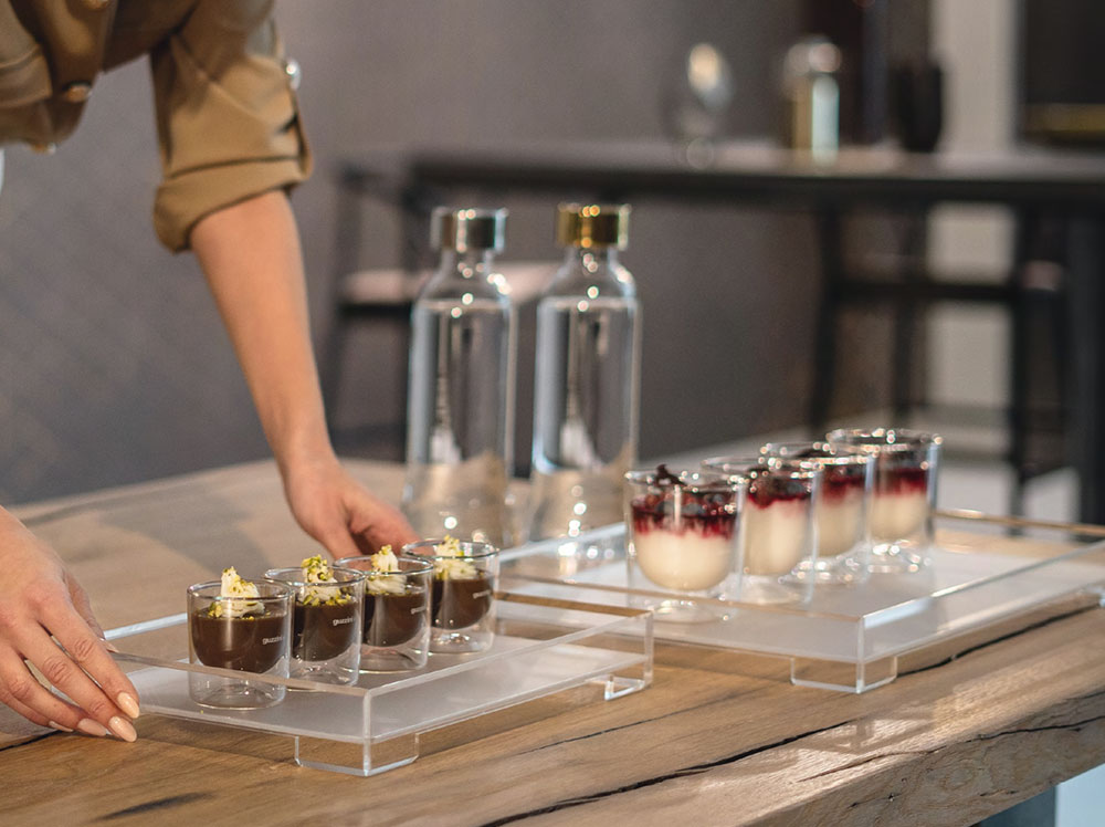 "Essence" è il vassoio della serie Icons dal design minimale, perfettamente impilabile per avere anche una funzione salvaspazio. Il fondo è antigraffio, i bordi rialzati facilitano la presa e i quattro piedini danno stabilità per un servizio in massima sicurezza.