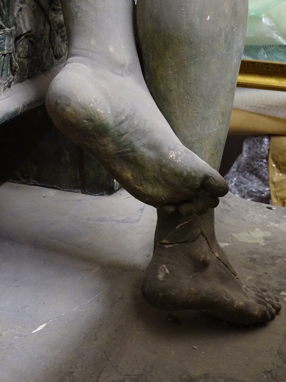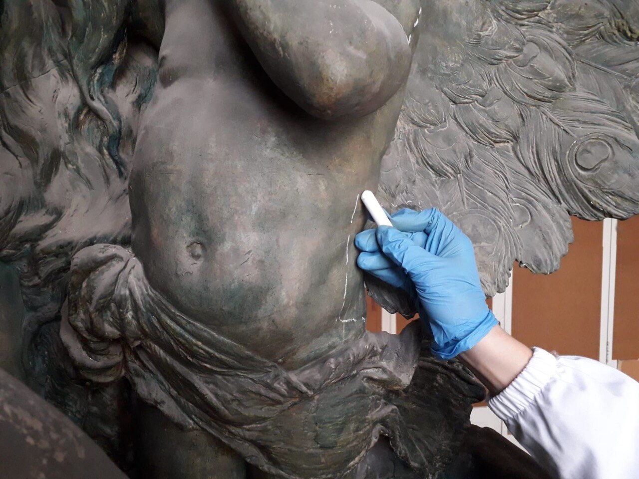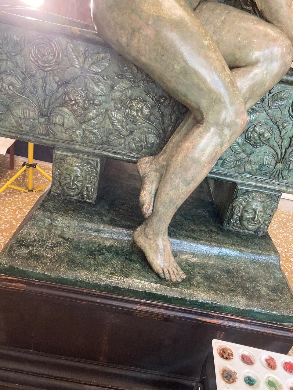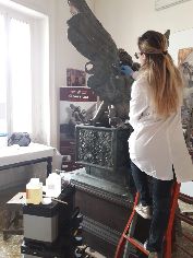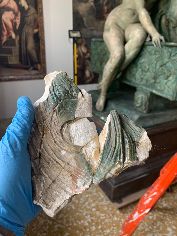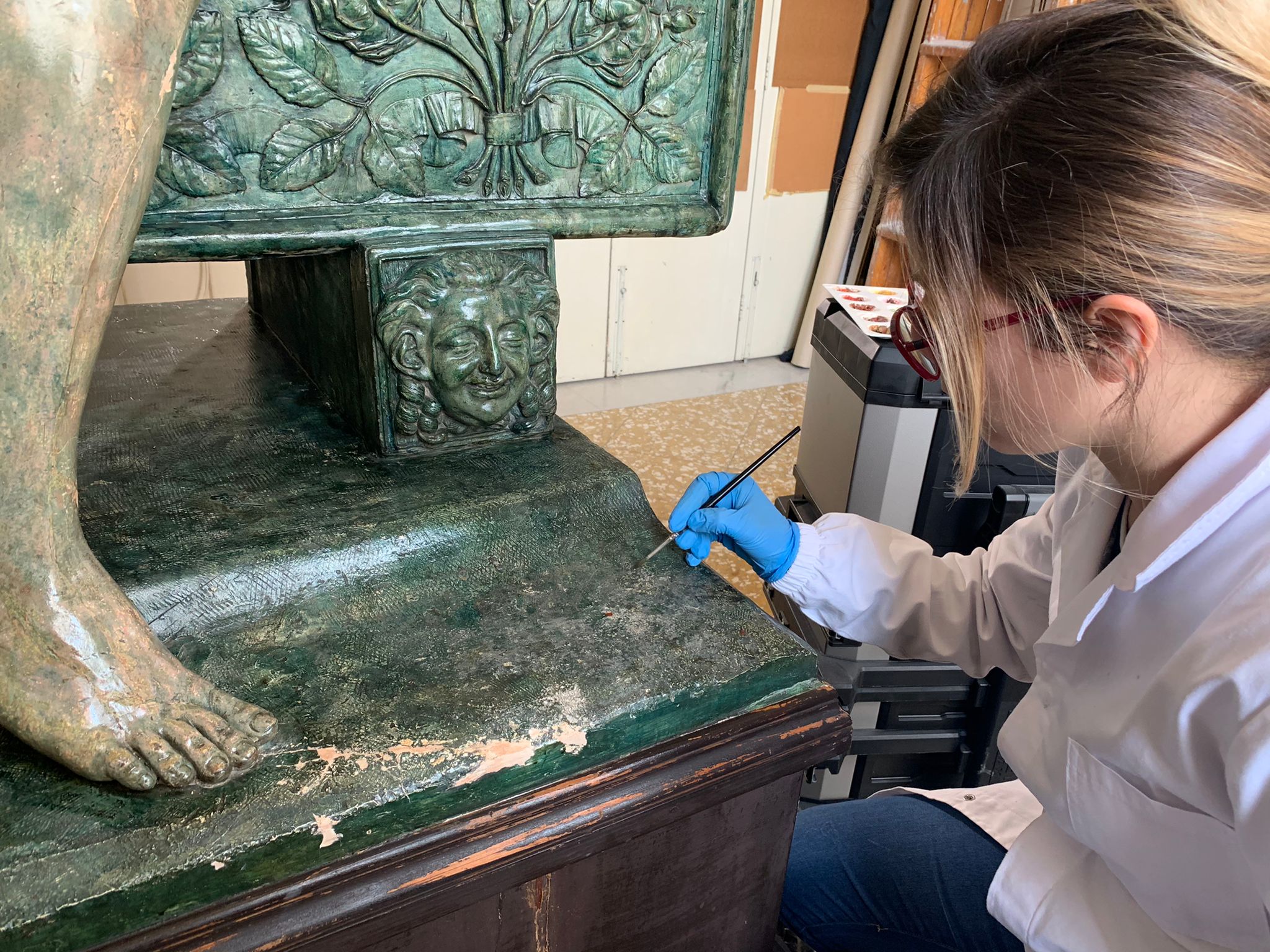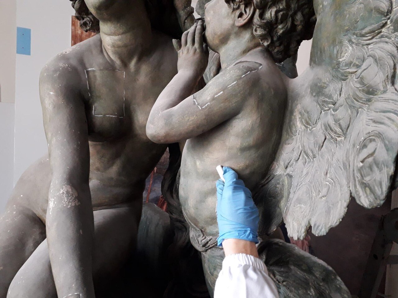 Verso la fine del restauro. Ecco le immagini delle ultime fasi di restauro: le stuccature, il ricollocamento della parti mancanti rifatte, il ritocco pittorico e la lucidatura.