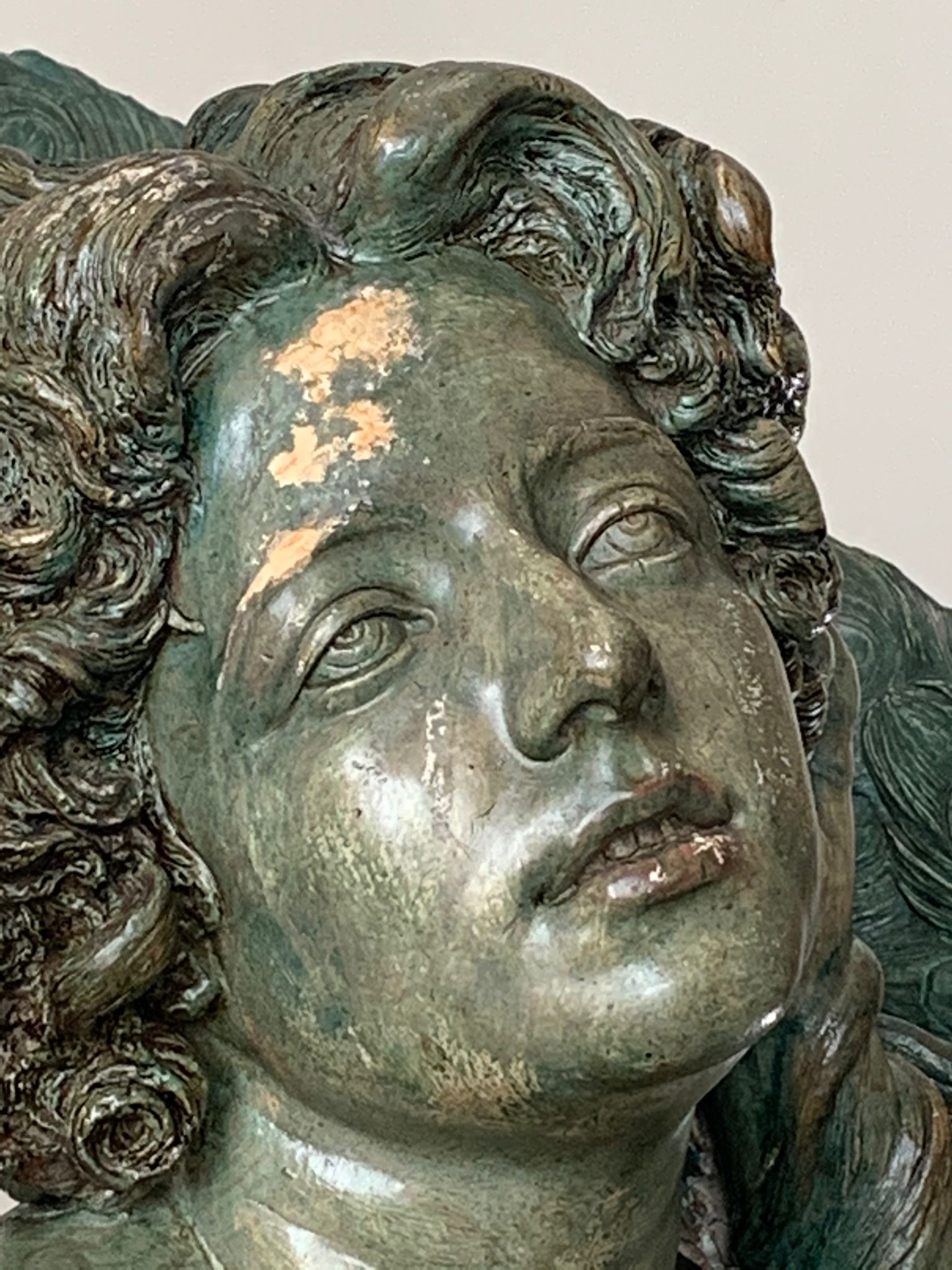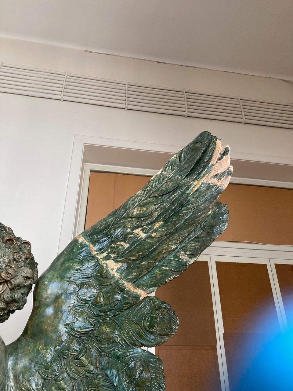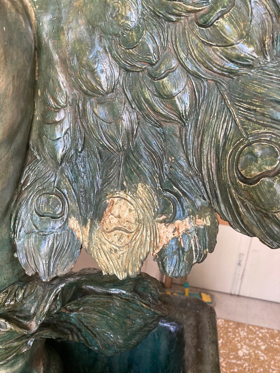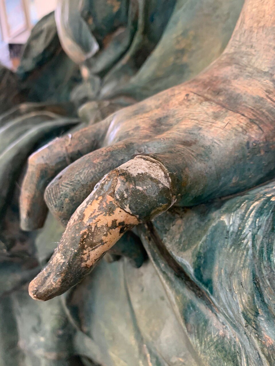 Verso la fine del restauro. Ecco le immagini delle ultime fasi di restauro: le stuccature, il ricollocamento della parti mancanti rifatte, il ritocco pittorico e la lucidatura.