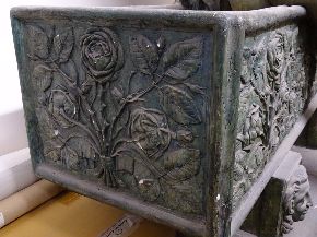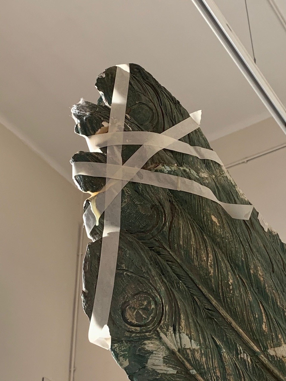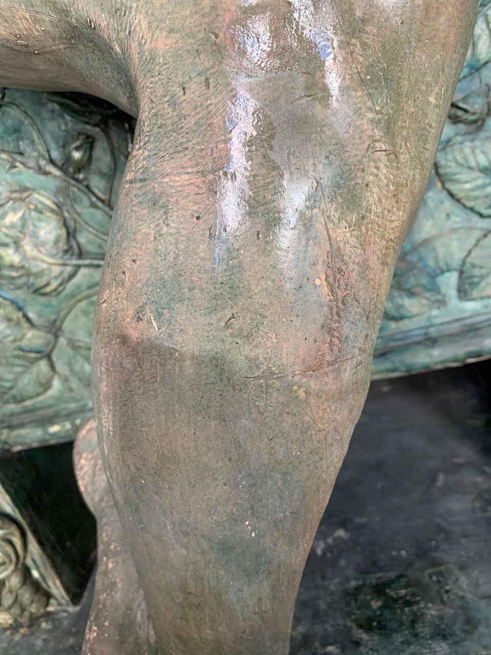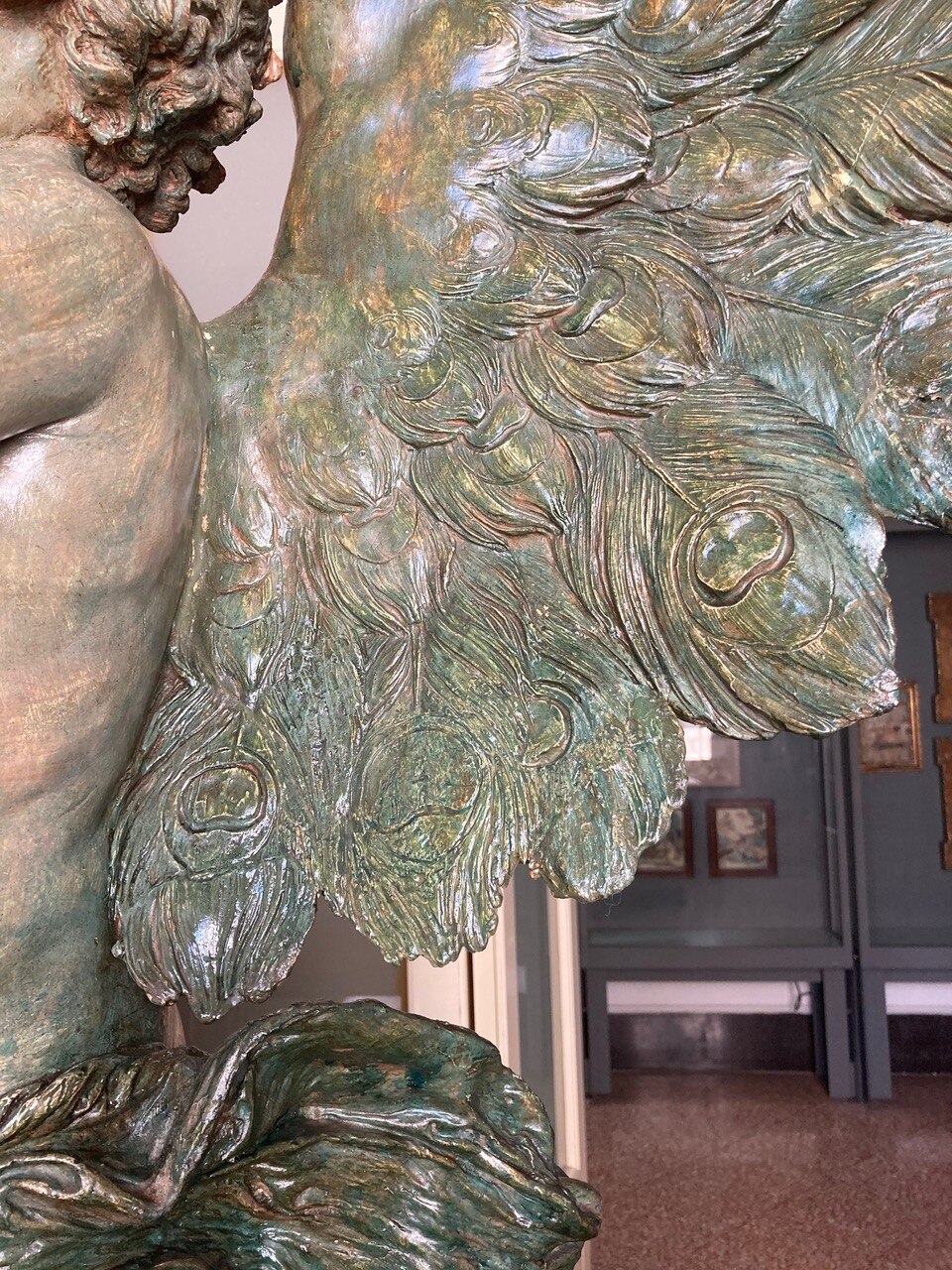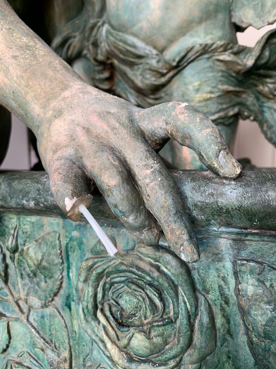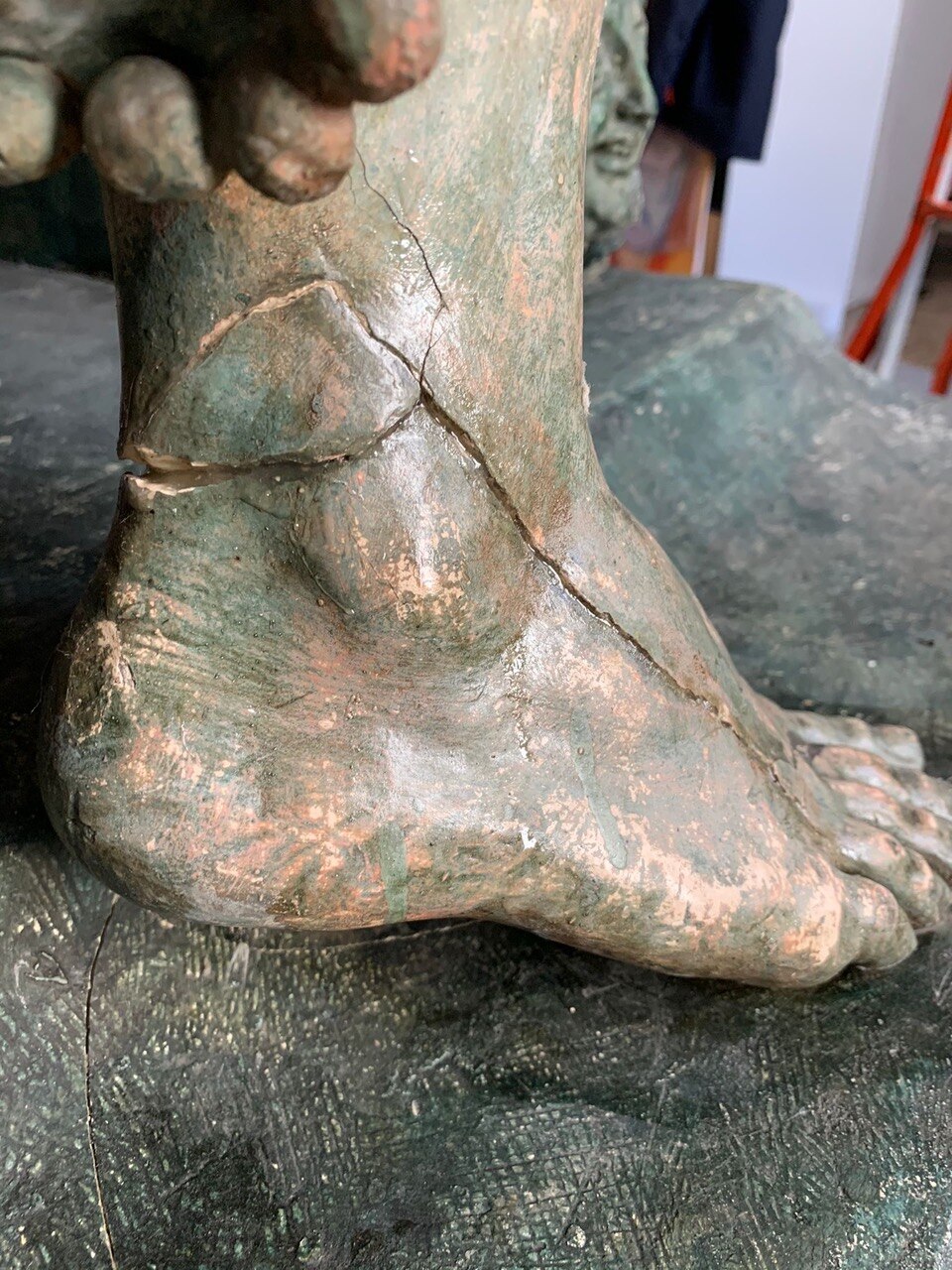 Verso la fine del restauro. Ecco le immagini delle ultime fasi di restauro: le stuccature, il ricollocamento della parti mancanti rifatte, il ritocco pittorico e la lucidatura.