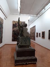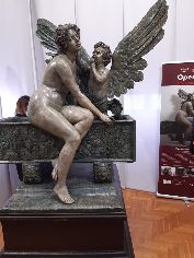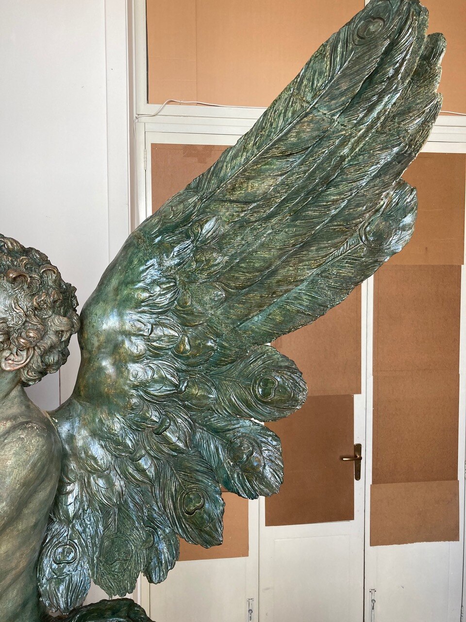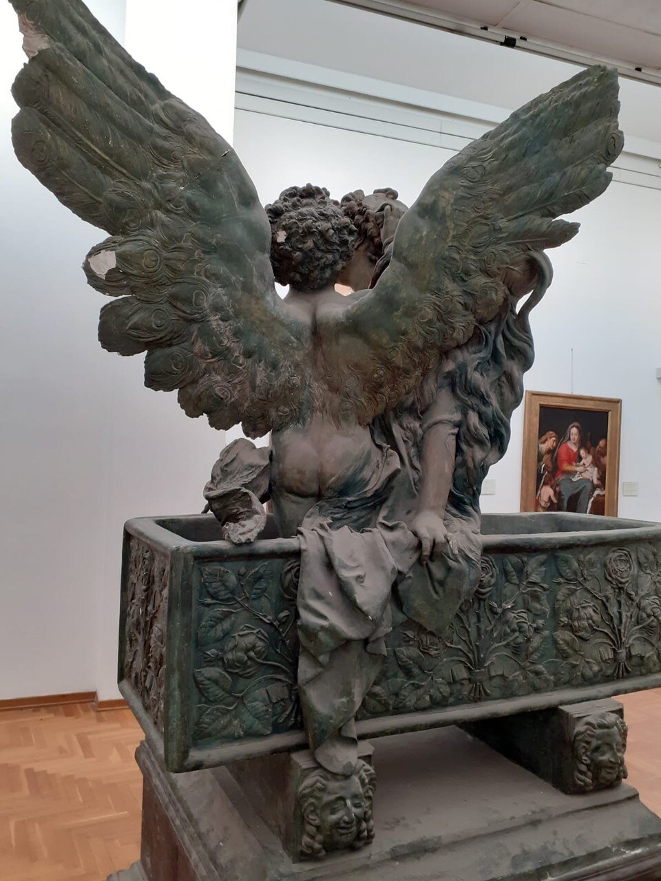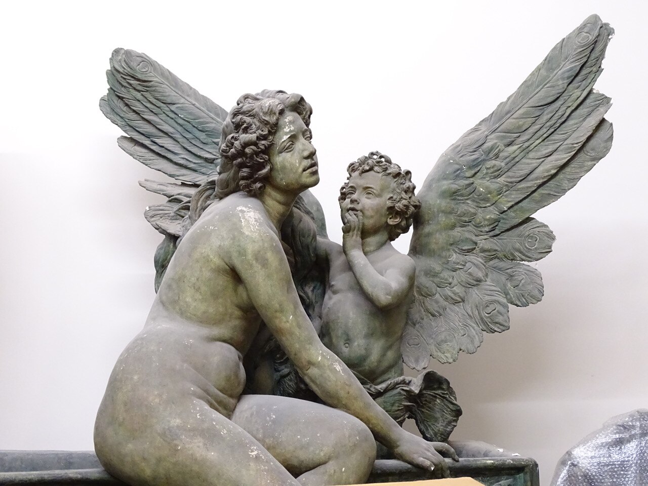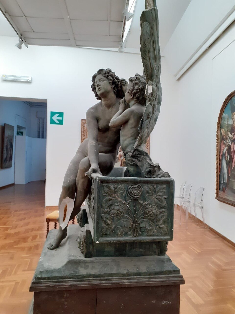 Completata a Passau, l'opera in gesso fu realizzata da Filippo Cifariello (1864 - 1936) alla fine del 1800 e presentata alla Biennale di Venezia del 1899. Si tratta di un gruppo per fontana la cui versione in marmo si trova in un museo di Boston, mentre il bronzo fu acquistato da Felice Spera che lo collocò nel giardino della sua villa privata a Napoli. L'opulento nudo femminile è un ritratto di Maria Brown, prima moglie dell'artista, protagonista e vittima della loro burrascosa unione, finita in tragedia. Gli stessi tratti morbidi e carnosi ricompaiono nel busto della Sfinge, altra immagine della Brown, esposta anch'essa alla Biennale di Venezia del 1899. La vasca è ricoperta totalmente da un fregio di rose in cui Marangoni ha voluto vedere delle "esuberanze ornamentali pleonastiche". Il gruppo scultoreo fa parte di una raccolta di quarantatré gessi, quasi tutti modelli originali, che nel 1934 lo scultore donò all’allora Pinacoteca Provinciale di Bari.