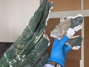 La pulitura. Ecco le immagini delle fasi di stuccatura, incollaggio e pulitura.