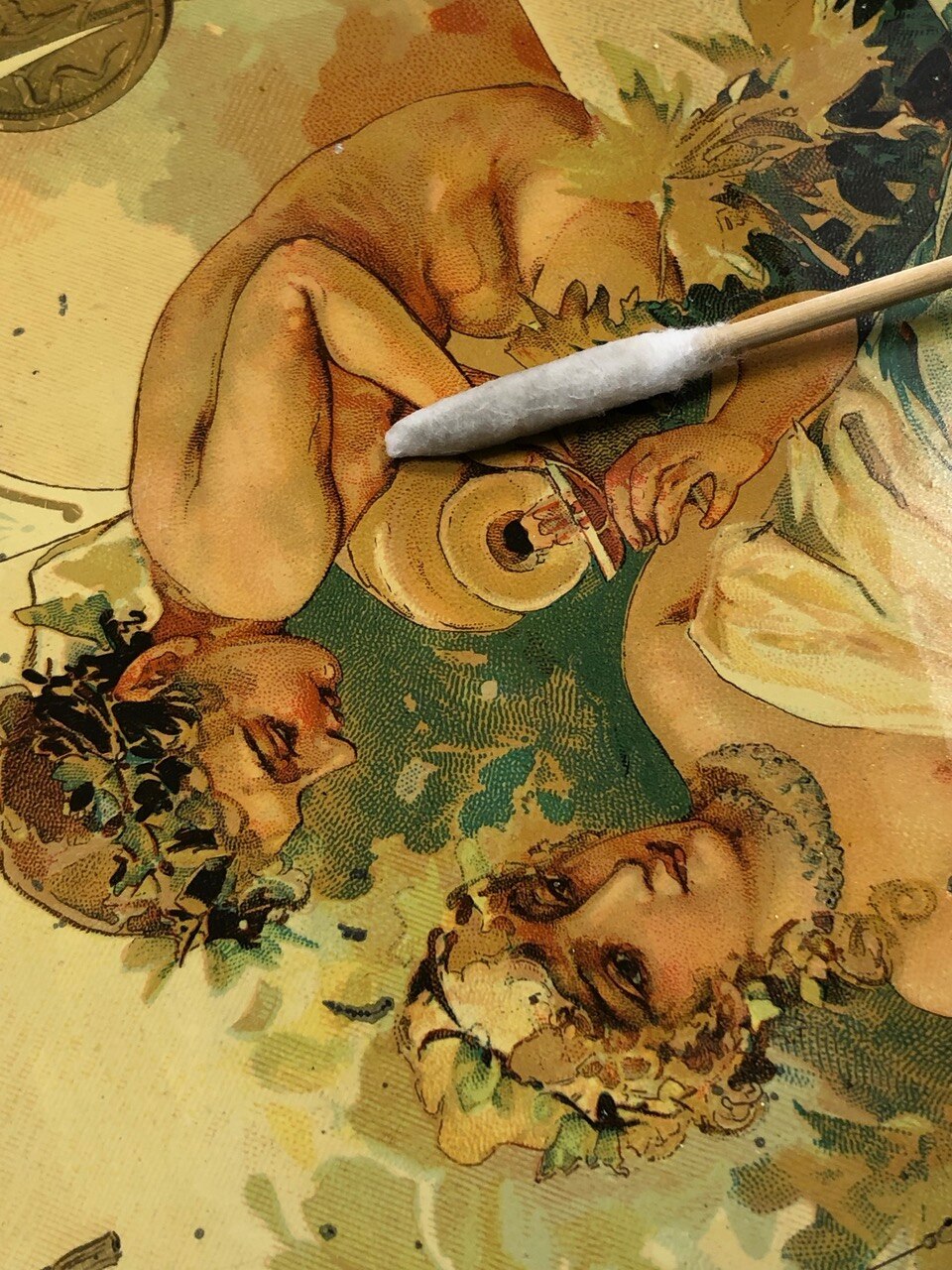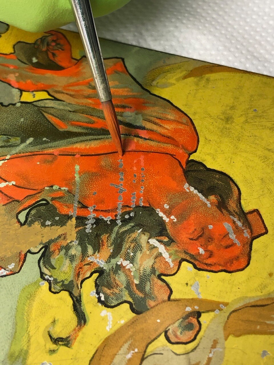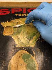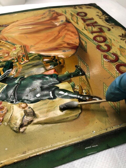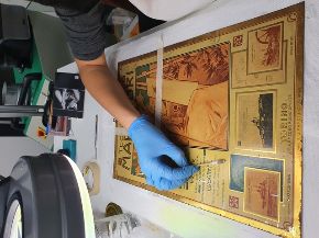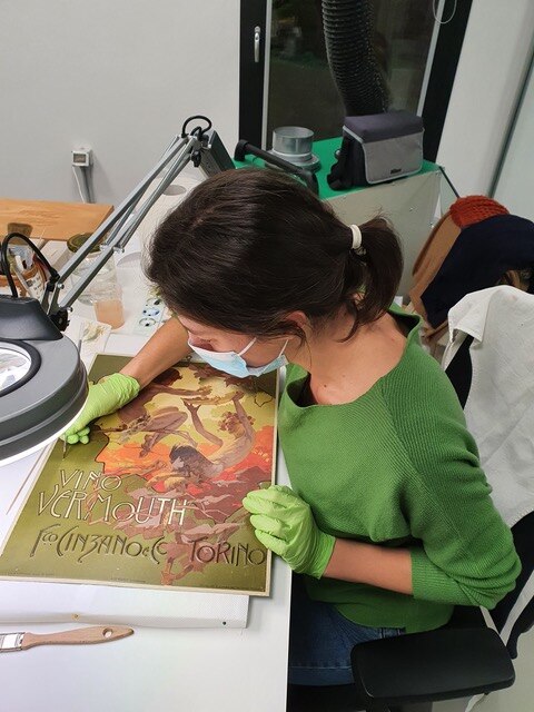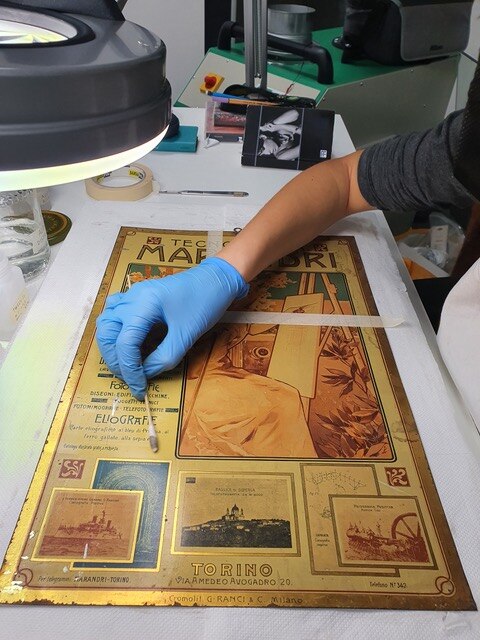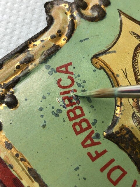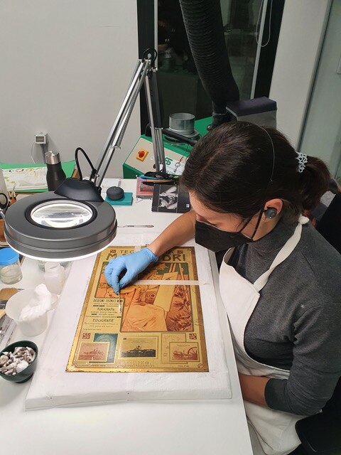 L’intervento prevede una prima fase conoscitiva da parte di un esperto con competenze archivistiche e storico artistiche al fine di catalogare interamente le serie. In seguito opereremo un intervento di conservazione della latta. La parte di studio storico artistico e scientifico andrebbe a supportare un restauro improntato al minimo intervento e a un migliore condizionamento.
