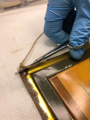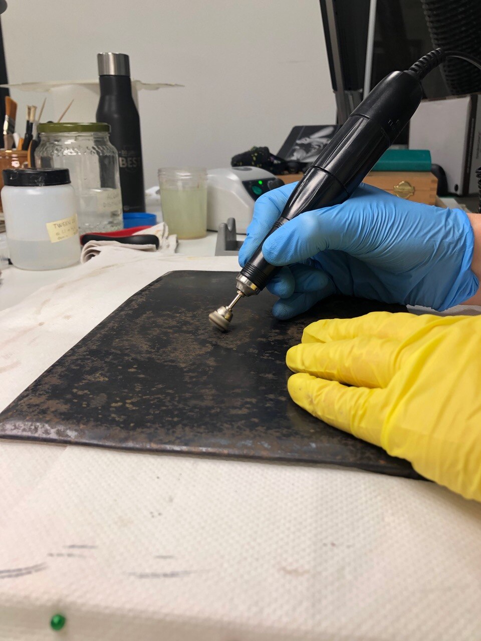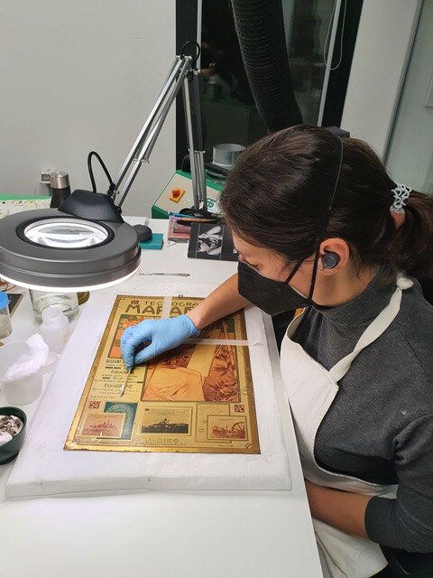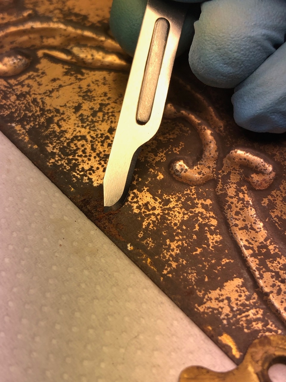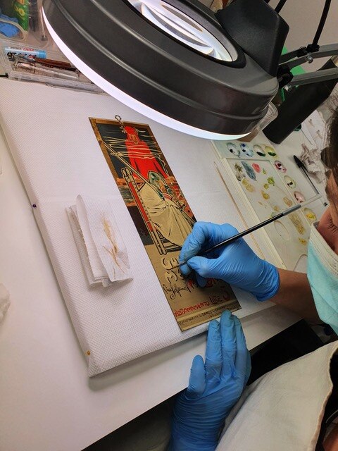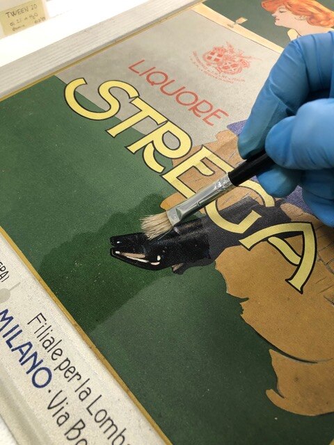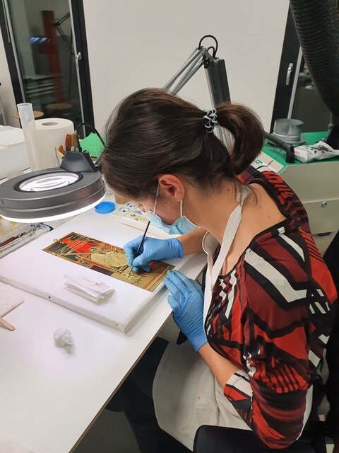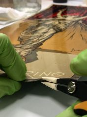 L’intervento prevede una prima fase conoscitiva da parte di un esperto con competenze archivistiche e storico artistiche al fine di catalogare interamente le serie. In seguito opereremo un intervento di conservazione della latta. La parte di studio storico artistico e scientifico andrebbe a supportare un restauro improntato al minimo intervento e a un migliore condizionamento.