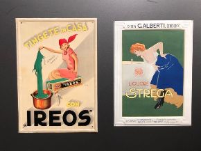 Si tratta dei più importanti illustratori dell’epoca, autori di manifesti che spesso dialogano con le latte e le vetrofanie avendone lo stesso soggetto ma diversa forma artistica e comunicativa. Le latte documentano in un arco cronologico ampio l’evoluzione del linguaggio artistico, le tecniche di comunicazione pubblicitaria e il cambiamento della società attraverso nuovi usi e prodotti.