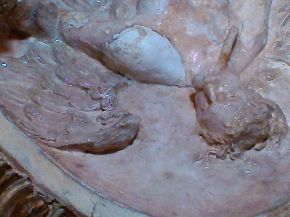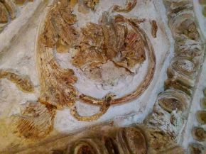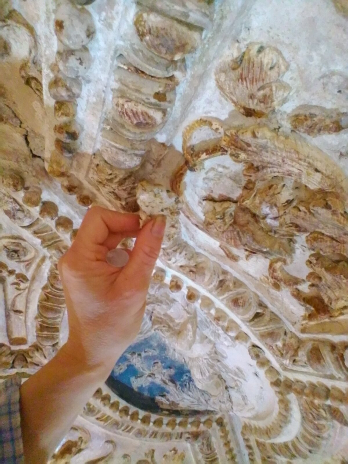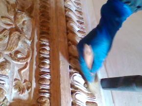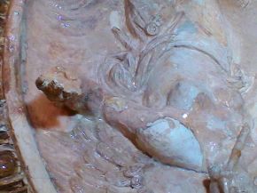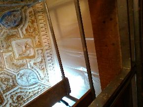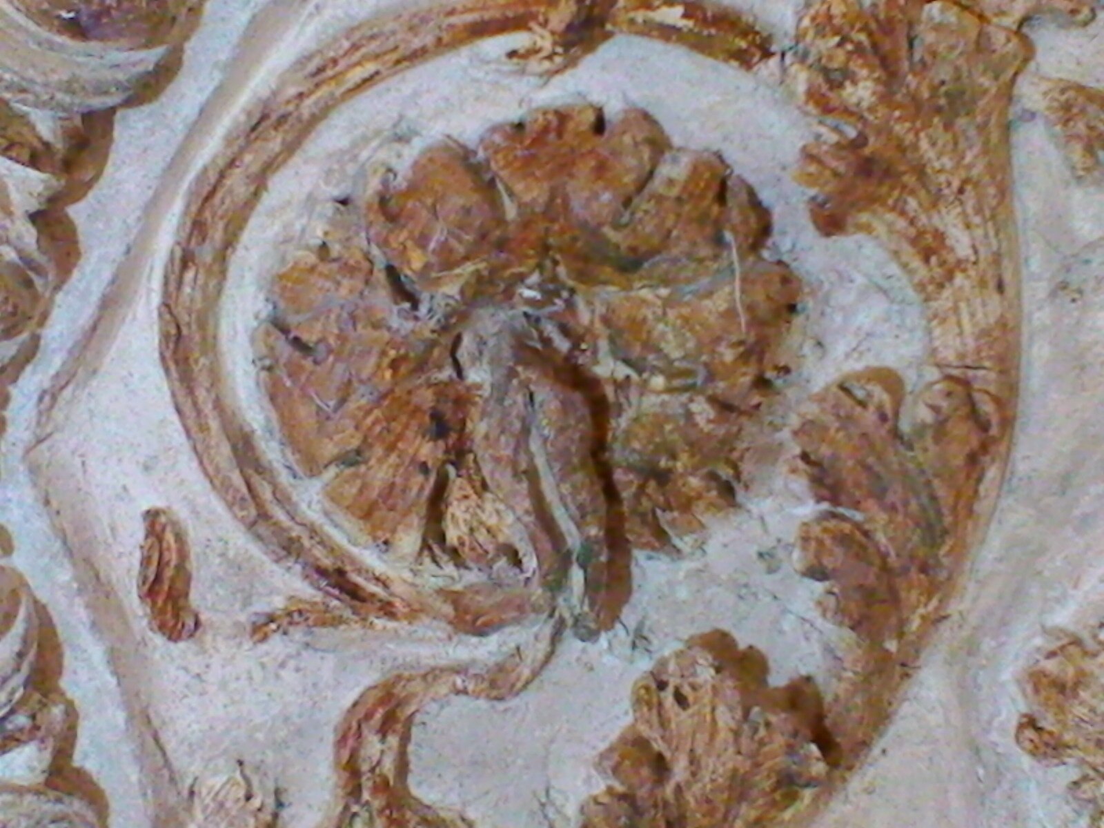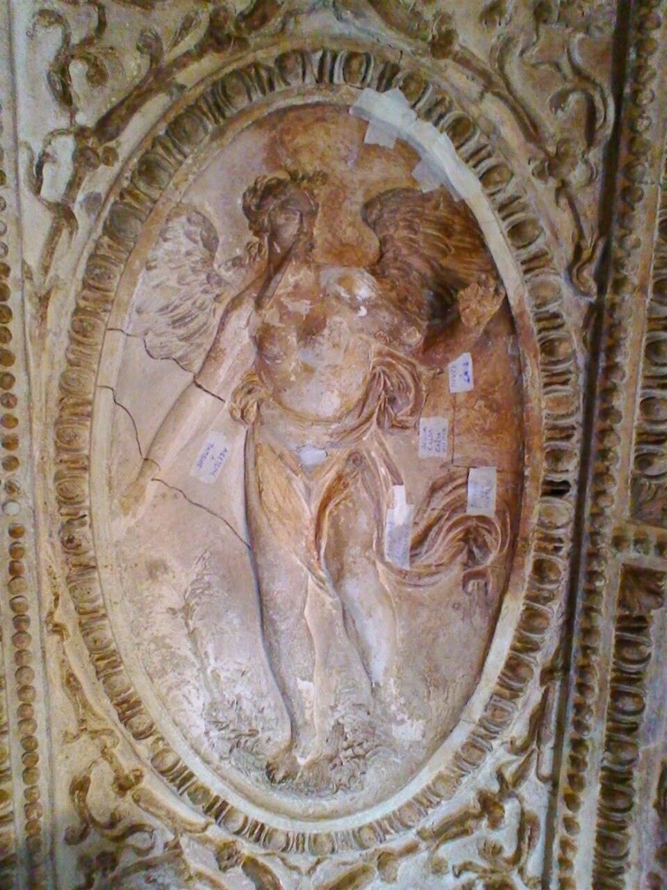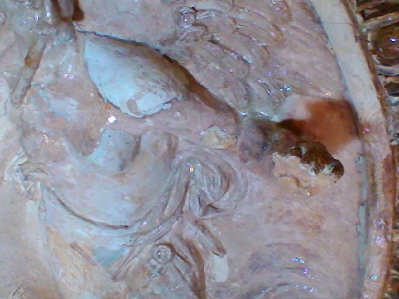 La pulitura. Ecco alcune immagini della pulitura e del consolidamento della parti in stucco staccate.