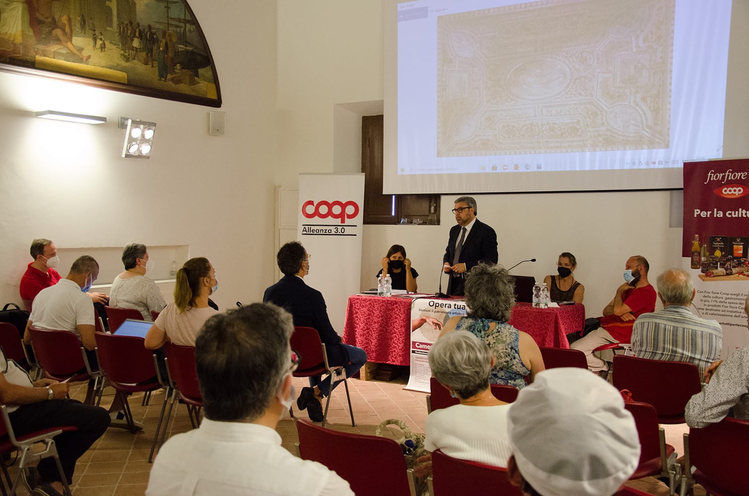 Si è tenuto oggi, a Palazzetto Baviera a Senigallia, l’evento di restituzione dell’opera a stucco “Camerino della vittoria” (1560/1565) di Federico Brandani. All’appuntamento hanno preso parte il sindaco Massimo Olivetti, il vice sindaco e assessore alla cultura Riccardo Pizzi, il direttore delle Politiche sociali e relazioni territoriali della Cooperativa, Enrico Quarello, e in rappresentanza dei soci Coop la Vicepresidente di Zona soci Sabina Sartini.