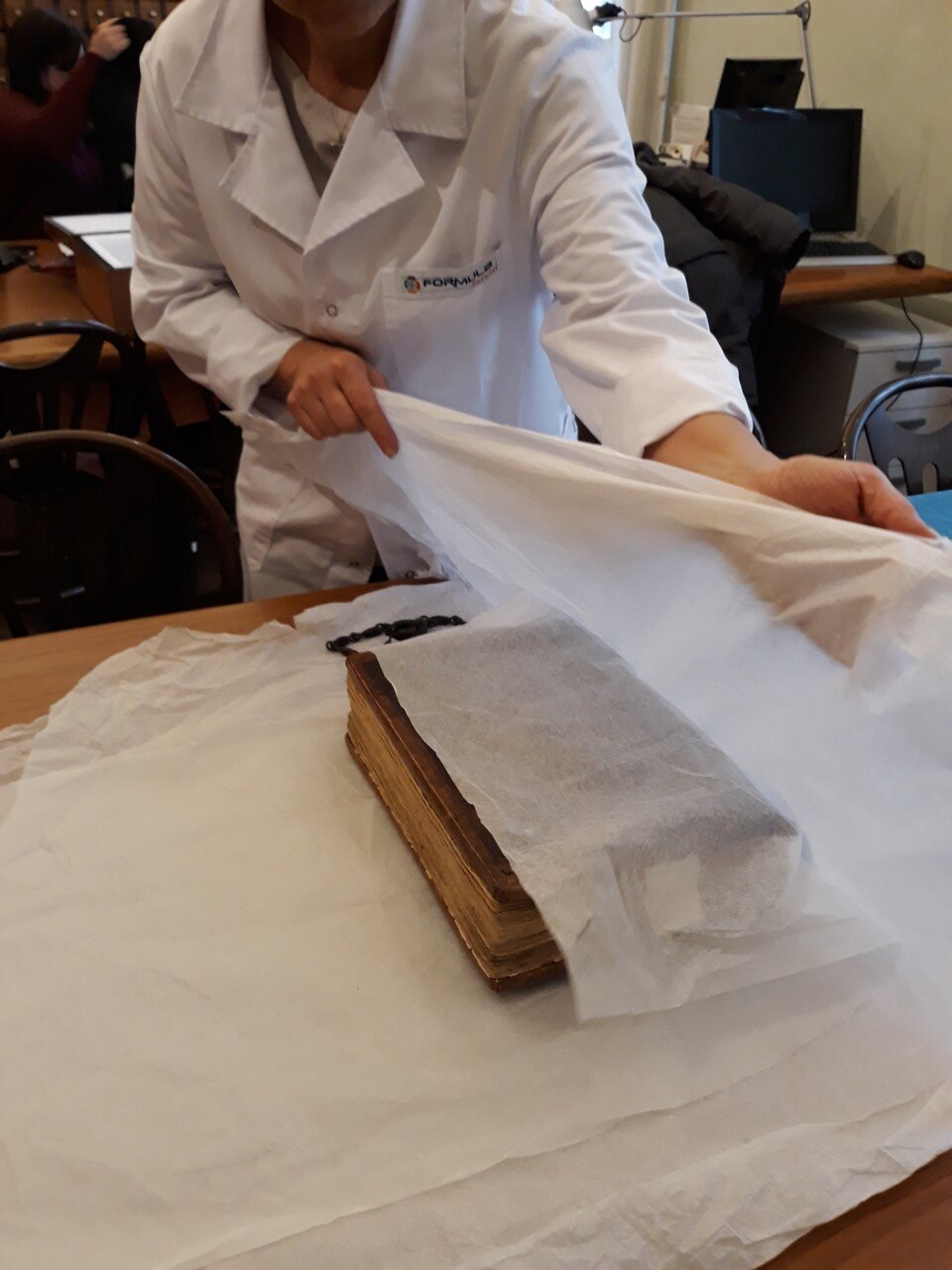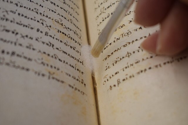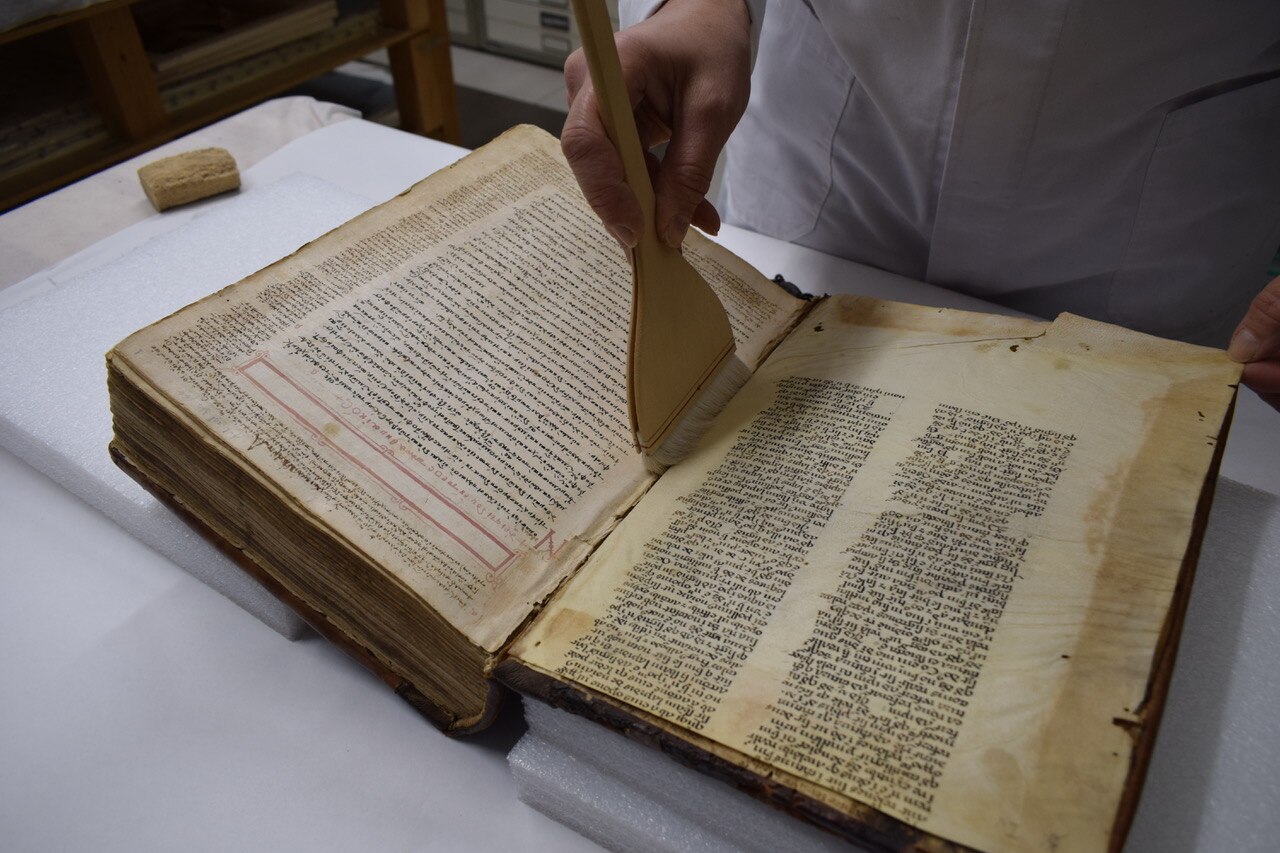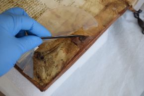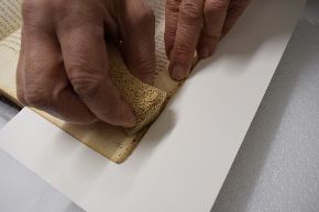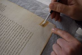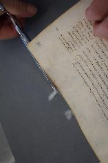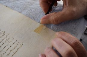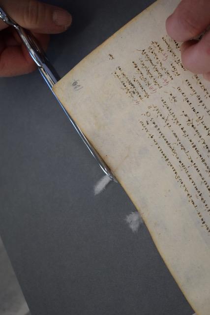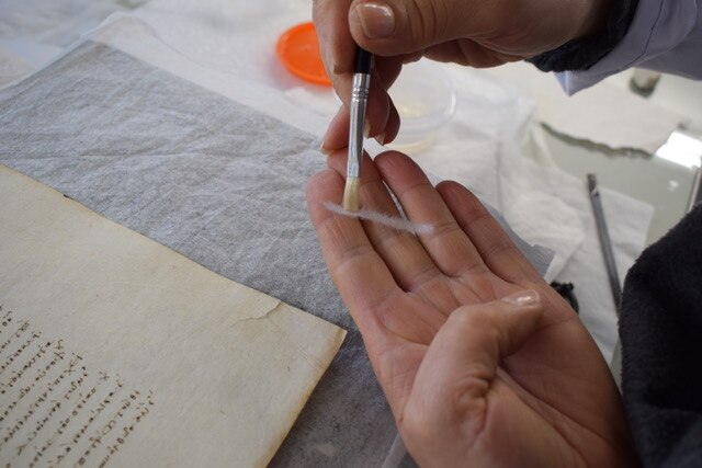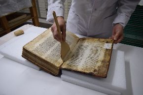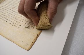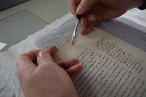 Le operazioni preliminari. Ecco le immagini delle fasi di spolveratura e pulitura a secco delle pagine del codice. La prossima settimana inizieranno la fase di smontaggio delle carte che necessitano dell’intervento di restauro e quella di consolidamento della carta in profondità.