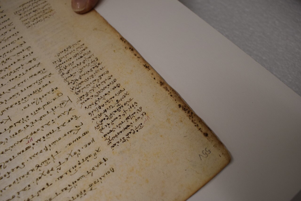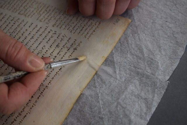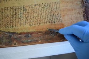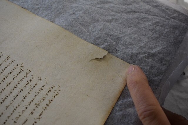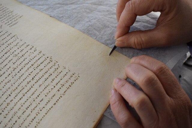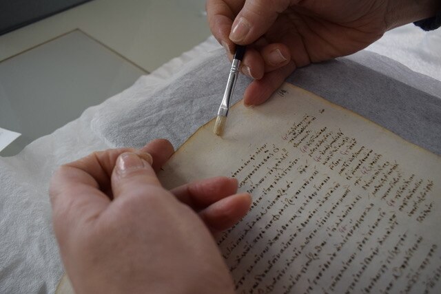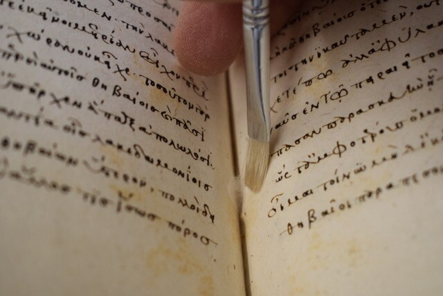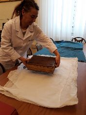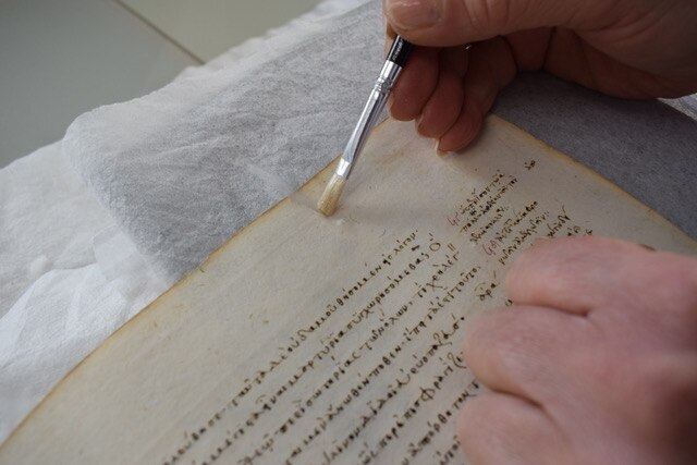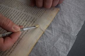 Le operazioni preliminari. Ecco le immagini delle fasi di spolveratura e pulitura a secco delle pagine del codice. La prossima settimana inizieranno la fase di smontaggio delle carte che necessitano dell’intervento di restauro e quella di consolidamento della carta in profondità.